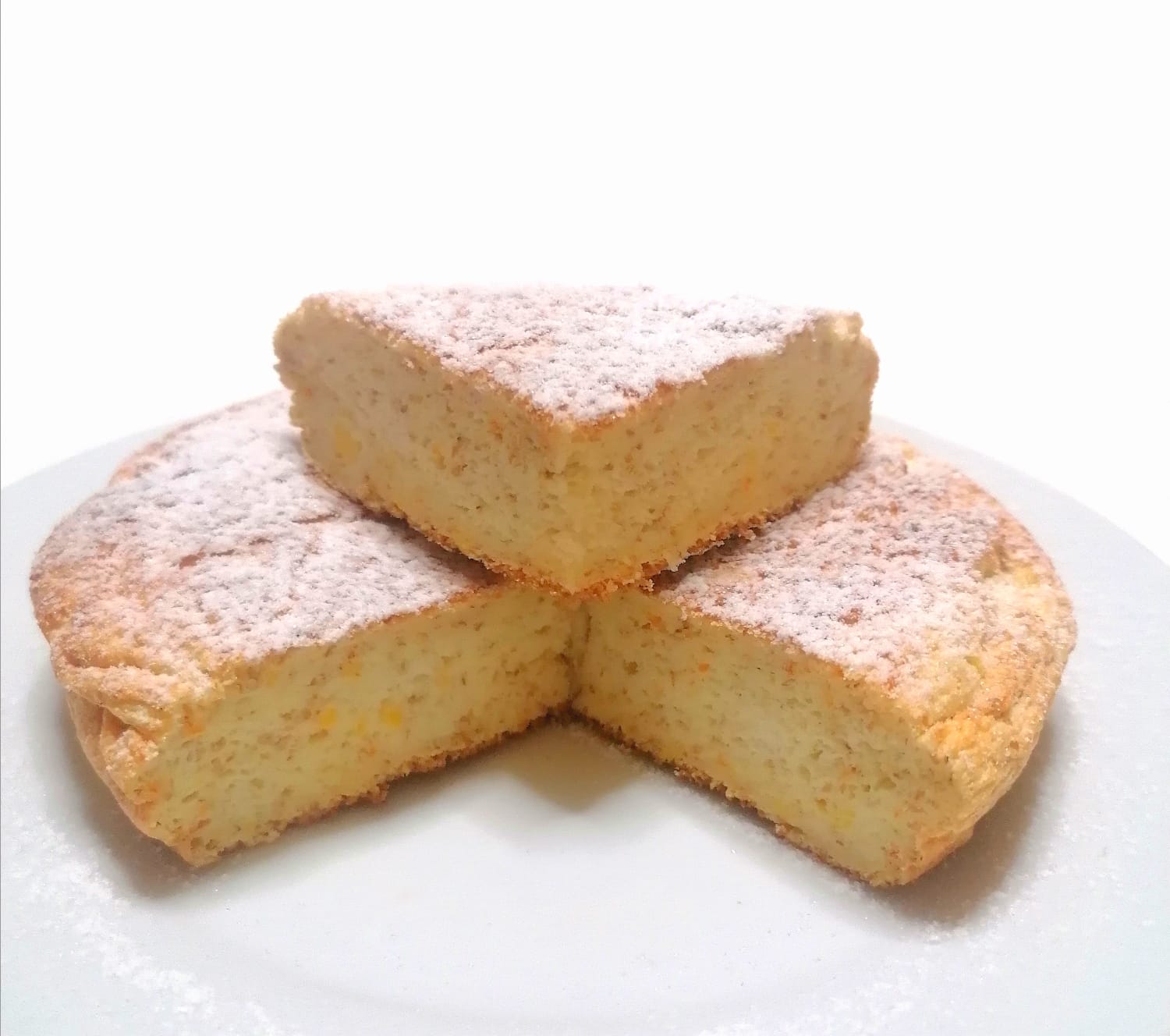 Ingredienti - 150 ml di albume d’uovo - 1 uovo intero - 20 g di eritritolo - 20 g di farina di avena - 20 g di farina di riso - Succo e scorza di metà arancia - Una bustina di lievito vanigliato per dolci Procedimento Montare a neve