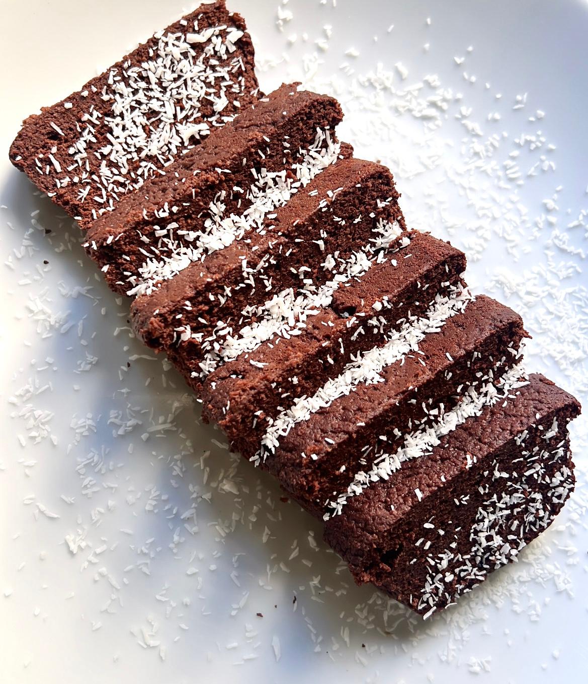 Ingredienti 40 g di farina di avena al cioccolato 30 g di farina di riso al cioccolato 20 g di proteine al cioccolato 10 g di cacao amaro 150 ml di acqua 100 ml di albume Lievito/idrolitina q.b. Cocco rapè q.b. (opzionale) Procedimento Mescolare le farine, le proteine, il cacao