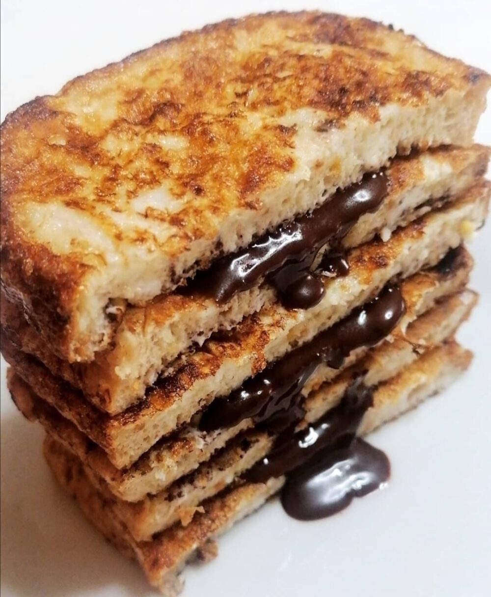 Ingredienti - 2 fette di pan bauletto integrale - 100 ml di albume d’uovo - Cannella in polvere - 10 g di cioccolato fondente (>80%) Procedimento Immergere per circa un minuto le fette di pan bauletto integrale nell’albume d’uovo, a cui è stato precedentemente aggiunta una spolverata