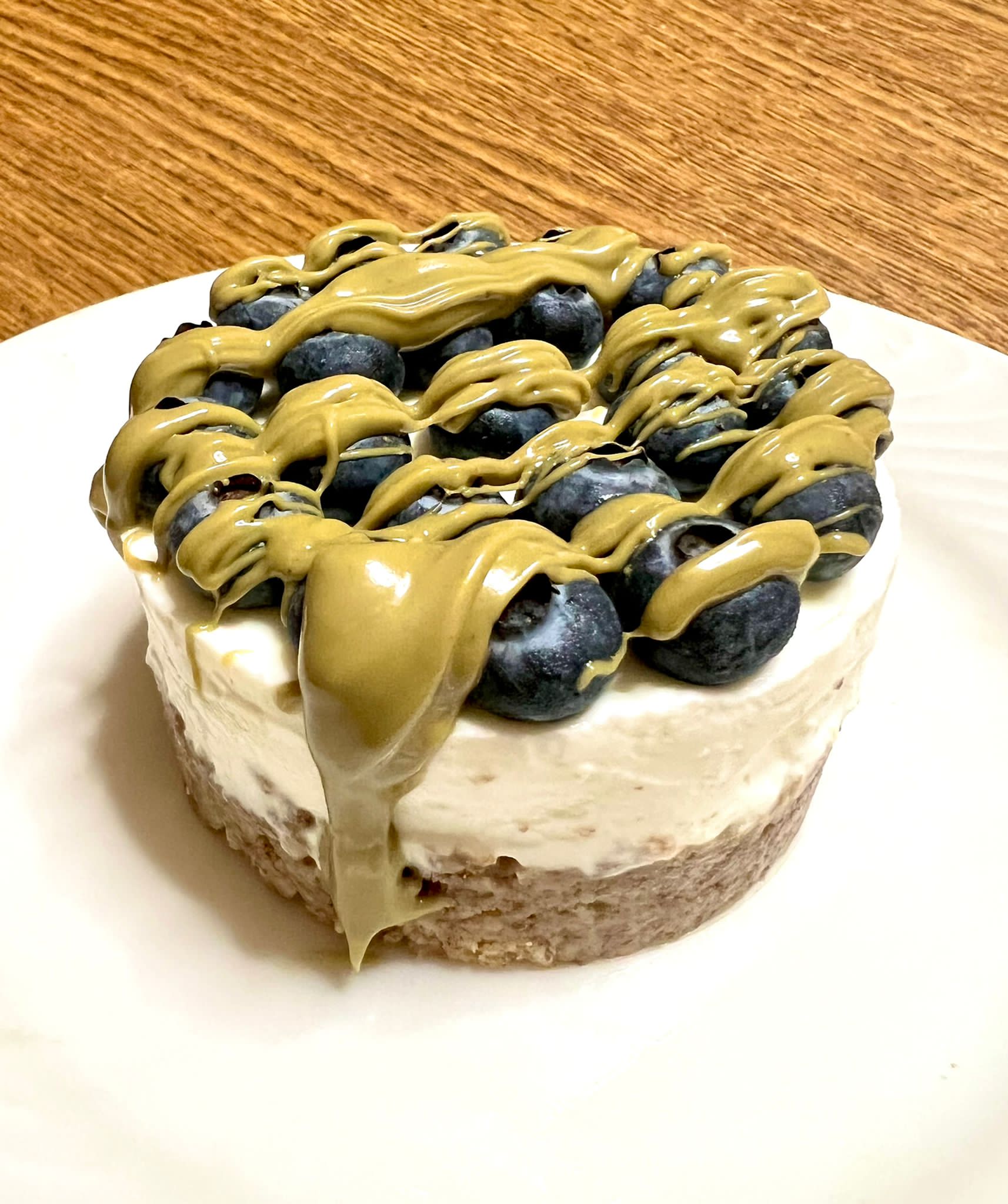 Aggiungere sulla base lo yogurt greco bianco precedentemente dolcificato e conservare in frigo per qualche ora.